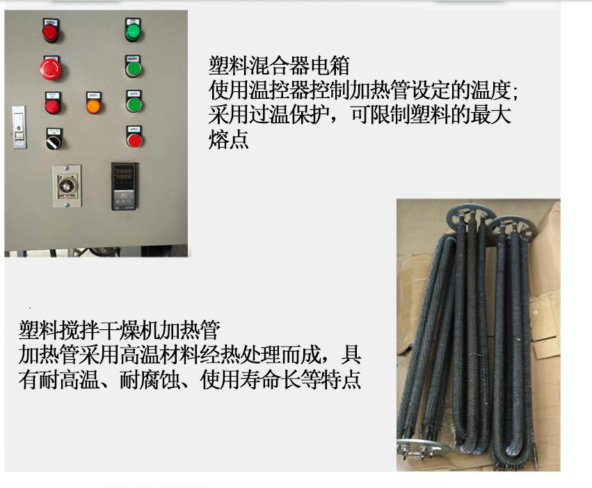 9、由于原料在桶內(nèi)不停的翻滾,熱風不停的從中心輸送從而達到混合與干燥的同步進行,節(jié)省時間和能源。如不需干燥,只要關(guān)掉干燥開關(guān),僅使用混合機功能,本機亦適用于粒料與粉碎料、色母粒的混合。